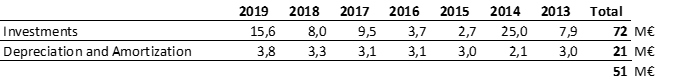 In the following table we can see that, for the last 7 years, investments have significantly outpaced depreciation & amortization.