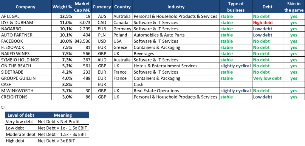 Weight of top 5 positions: 60,1% of the portfolio.